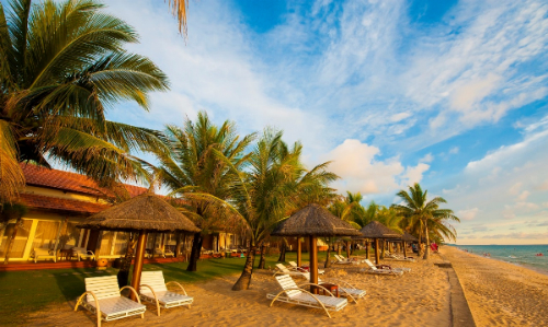Este complejo turístico de cuatro estrellas fue construido en una extensión de cuatro hectáreas en la playa Bai Truong, una de las más hermosas de Phu Quoc.