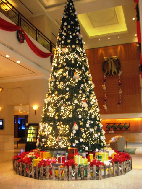 | Árbol de Navidad en el vestíbulo de un gran hotel en Hanói |