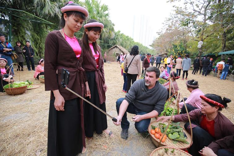 ![]() Un turista extranjero se siente atraído por la escena del mercado rural vietnamita reproducido en el corazón de la capital