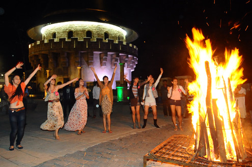 ![]() Por la noche, se efectúan además danzas del fuego y música callejera |