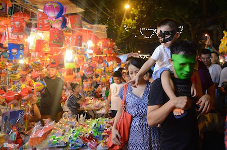 ![]() Es también la ocasión para disfrutar del clima fresco del otoño entre familiares y amigos. En esta imagen, las calles de Hang Ma y Hang Luoc, donde se venden los juegos populares del ocasión, estaban abarrotadas |