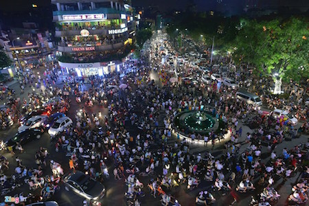 ![]() La céntrica plaza de Dong Kinh Nghia Thuc estaba llena de gente |