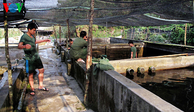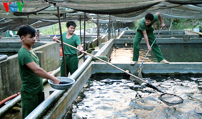 (VOVworld) - La provincia montañosa de Lai Chau, al norte de Vietnam cuenta con desventajas geográficas y los soldados del puesto fronterizo Pa Vay Su deben enfrentarse a numerosas dificultades. Pero hasta ahora han superado los retos gracias a iniciativas como la cría de salmones y esturiones, originarios de Europa del Norte. El coronel Duong Trong Dong, comandante del cuartel general de la provincia, tuvo esta idea después de sus visitas al puesto fronterizo de Vang Ma Chai, en el arroyo Then Seo Ho. Este proyecto recibió el apoyo de la administración provincial y se puso en marcha en septiembre de 2008 con el objetivo de ayudar a las organizaciones financieras y los hogares de la localidad en el desarrollo económico. La primera etapa del plan reportó a los soldados un ingreso superior a 100 millones de dongs (algo más de 5 mil dólares estadounidenses) por 3 toneladas de pescados.