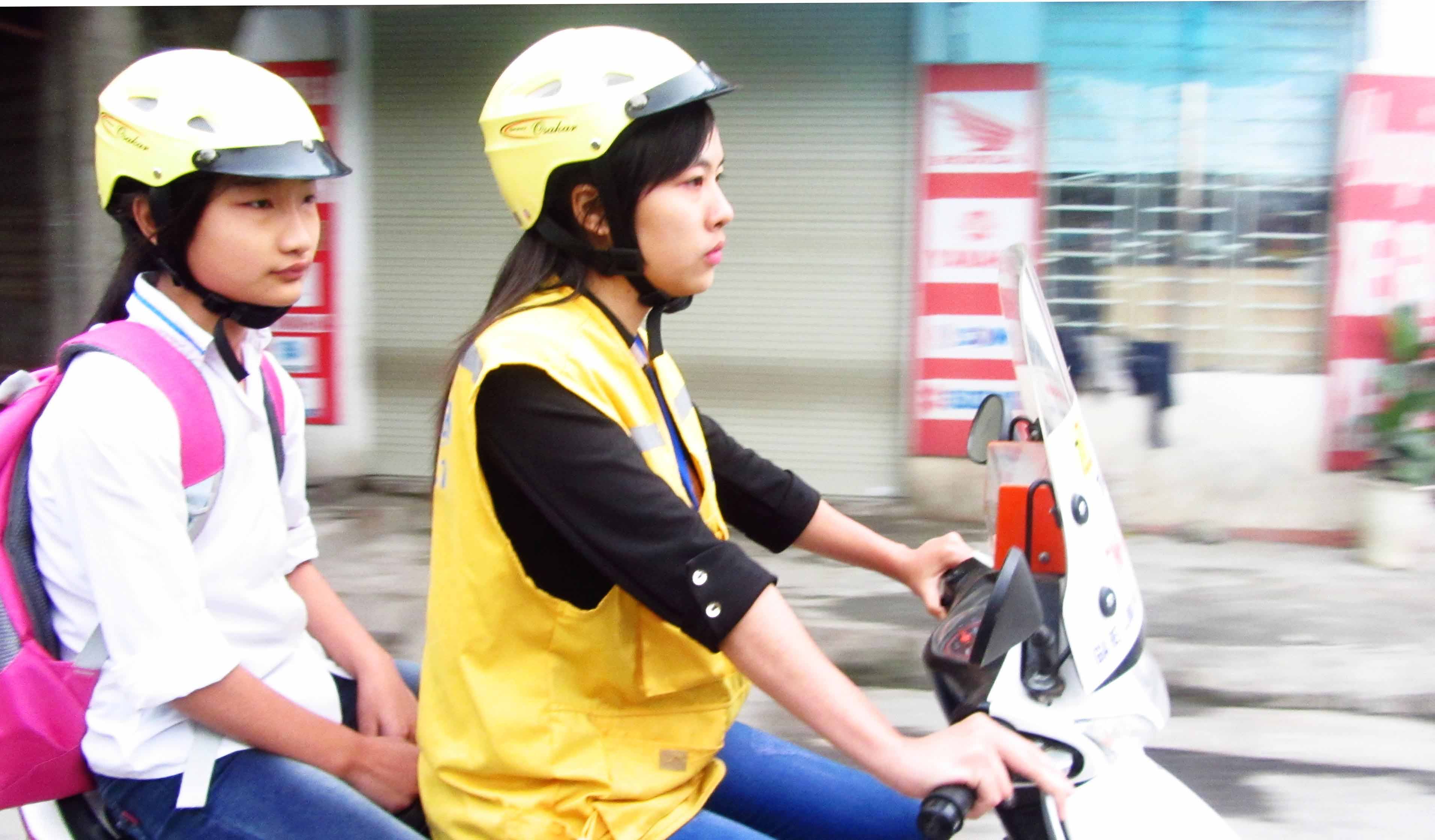 (VOVworld) - En los últimos tiempos, los vietnamitas se han familiarizado con la imagen de las estudiantes que llevan a los niños a la escuela. En uniforme amarillo, estas conductoras jóvenes trabajan con devoción para satisfacer la demanda de desplazamiento infantil.