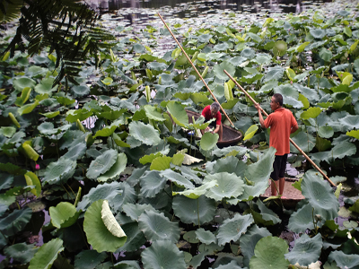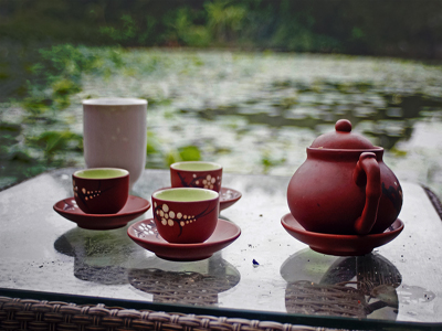 ![]() Nada es más agradable que degustar el sabor fresco y fragante de tazas del té a orilla de una laguna de flor de loto en florecimiento