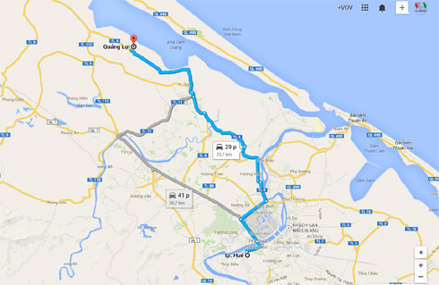 La mapa de ruta de la ciudad de Hue a Quang Loi