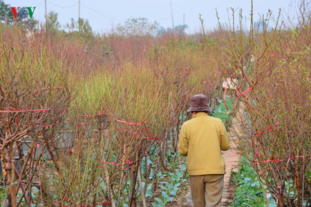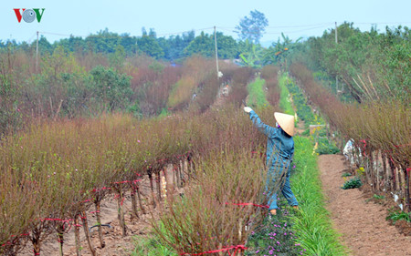 (VOVworld) - Como se aproxima el Año Nuevo Lunar (Tet), los agricultores del pueblo de Nhat Tan preparan las plantas de melocotones, kumquat y ochna para los capitalinos. Estos árboles, para los vietnamitas, simbolizan el renacimiento, la suerte, la felicidad y la prosperidad. Por eso, unos 10 o 15 días antes de la nochevieja, todo el mundo trata de conseguir para su familia, aunque es solo un pequeño kumquat o un ramo de durazno para adornar la casa junto con otros tipos de flores y saludar el Año Nuevo Lunar.