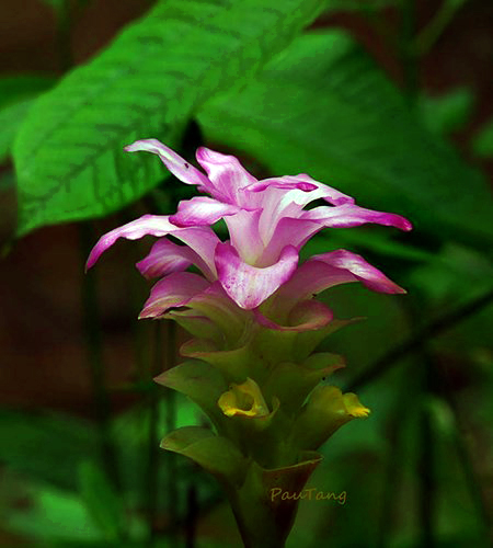 ![]() Flores de jengibre ocultas (Curcuma petiolata) tienen el color similar al de pétalos de loto