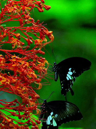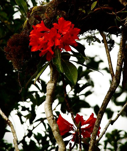 ![]() Flores del geranio de la jungla (Ixora coccinea) resaltan en inmensos bosques