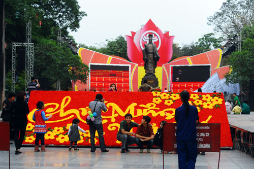 | Hanoyenses toman fotos ante el monumento al rey Ly Thai To |