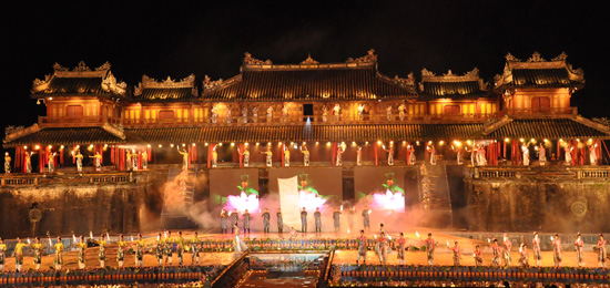 El Festival de Hue 2012 se inauguró oficialmente el 7 de abril, en Ngo Mon- puerta principal al sur de la imperial ciudadela de Hue, con un excelente programa integrado por artistas nacionales y extranjeros. El Festival de Hue 2012 y la inauguración del Año nacional de Turismo se llevaron a cabo en el espacio multicolor, para honrar a los valores tradicionales vietnamitas y fomentar el intercambio de diferentes culturas de los 5 continentes.