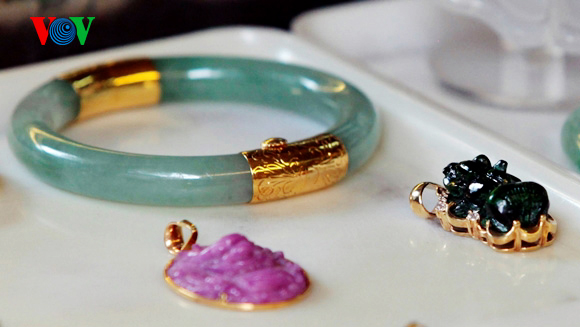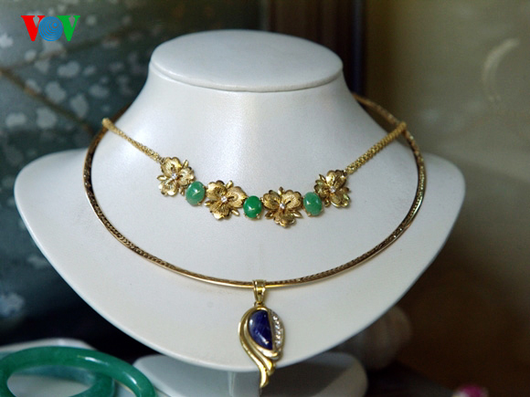 | Joyas de piedras preciosas elaboradas en la calle de Hang Bac |