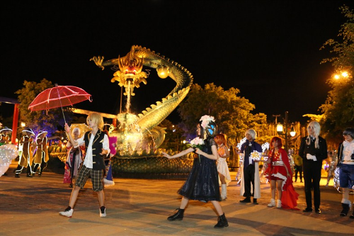 Desde las 7 hasta las 9 de la noche de los martes, viernes, sábados y domingos a lo largo de un mes, el programa “Velada de colores asiáticos” se desarrolla en el escenario de Sun Wheel y las zonas culturales japonesa y china.