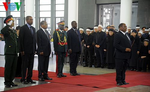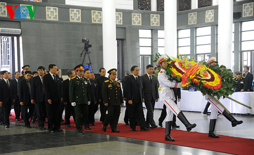 ![]() La delegación de Mozambique, encabezada por el general Alberto Chipande, ex ministro de Defensa homenajean al fallecido comandante en jefe de Vietnam |