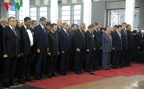 ![]() La delegacion de alto nivel de Laos, con el presidente Choummaly Sayasone al frente en la ceremonia funeraria |
