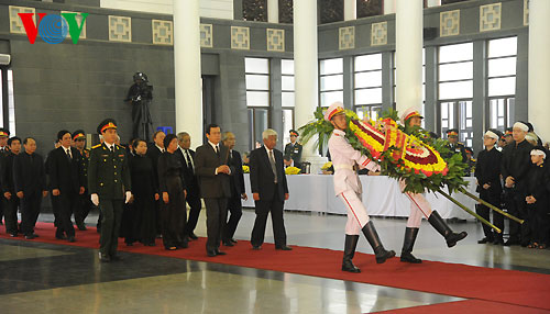 ![]() El presidente Truong Tan Sang y la delegacion del Estado rinden homenaje al general Vo Nguyen Giap |