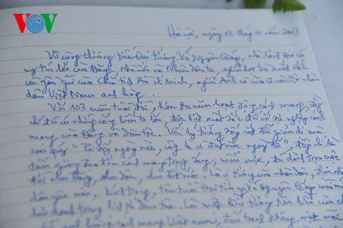 ![]() El líder partidista y el miembro del Comité central del PCV, Le Hong Anh expresan sus emociones en el Libro de condolencias |