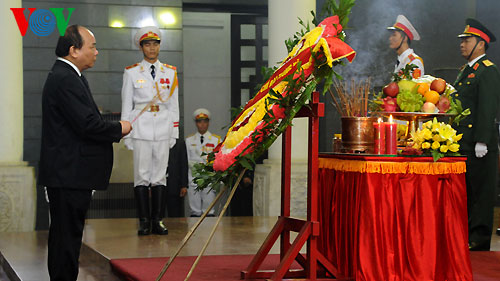 ![]() La delegacion de la Asamblea Nacional con el presidente Nguyen Sinh Hung al frente se inclinan ante la figura del general |