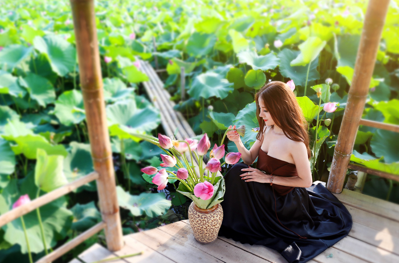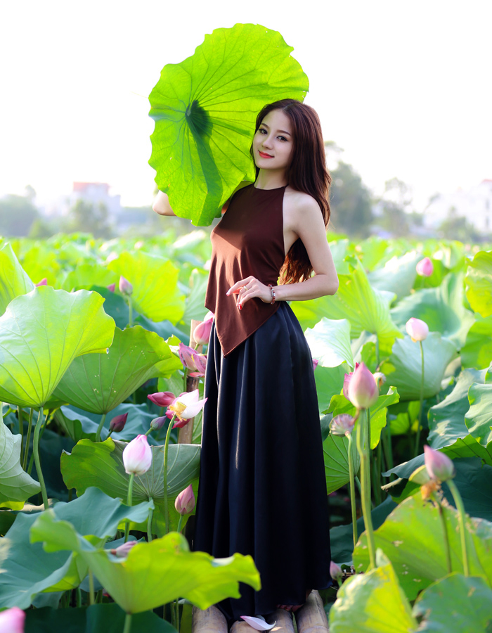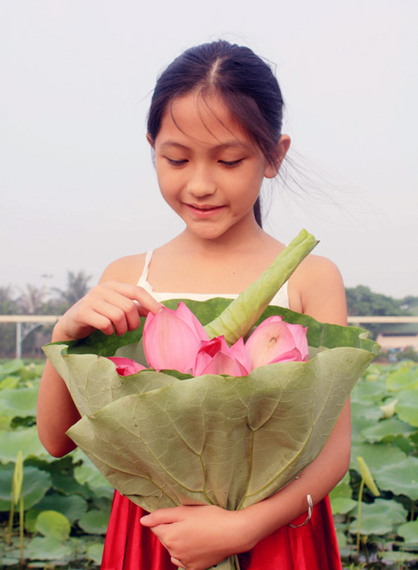 Muchachas capitalinas acuden a lagunas de loto