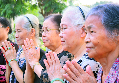 ![]() En su recinto se halla la estupa Luc Do Dai Sen, de 15 metros de altura y 11 pisos, donde se exhiben 66 estatuas del Buda |