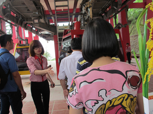 La guía enseña a los visitantes antes de subirse al teleférico |