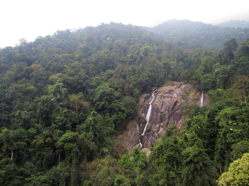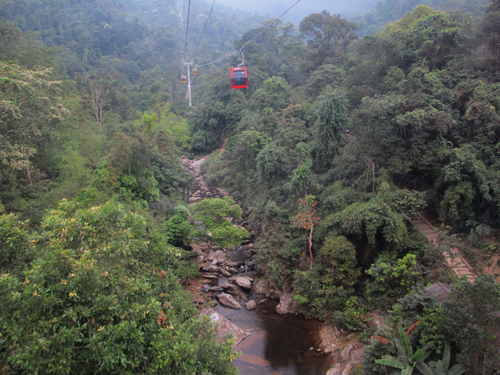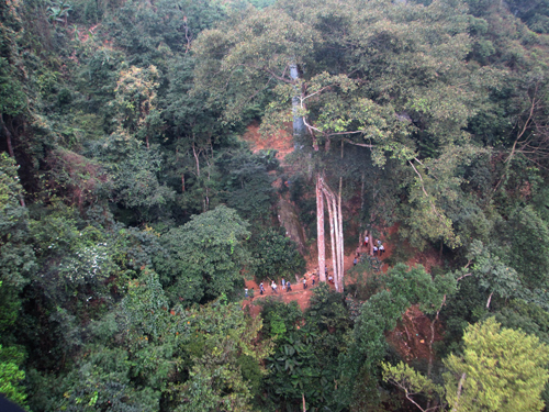 La Cascada Bạc (Plata) vista desde el teleférico. Es un salto de agua con una altura |