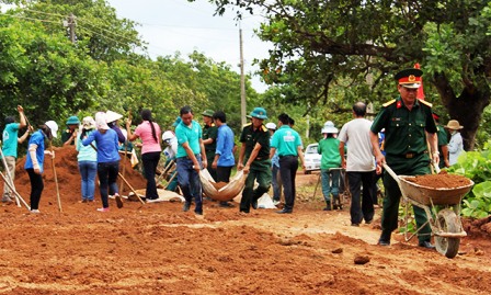 ![]() Oficiales y soldados de Binh Phuoc apoyan a la población local en la construcción del camino rural (Foto:Binh Phuoc online)