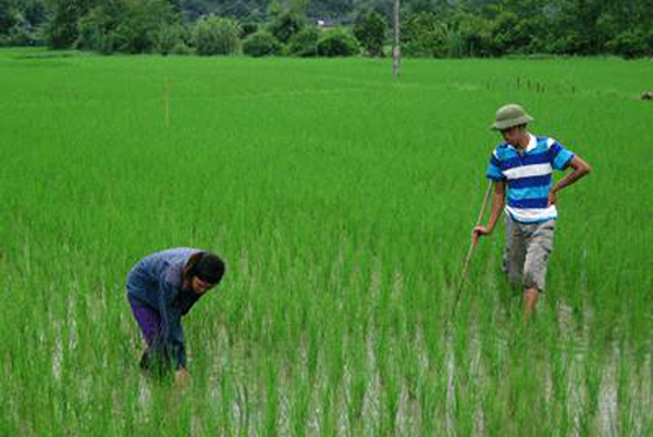 Campesinos del villorrio Chẻ Cọ en la provincia Bắc Kạn cuidan el arroz