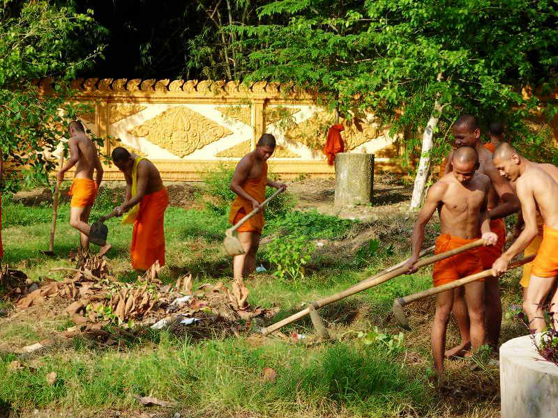 Monjes budistas de Tra Cu participan en la renovación rural