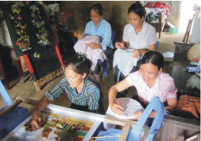 Mujeres de la comarca de Xuan Giang elaboran bordados
