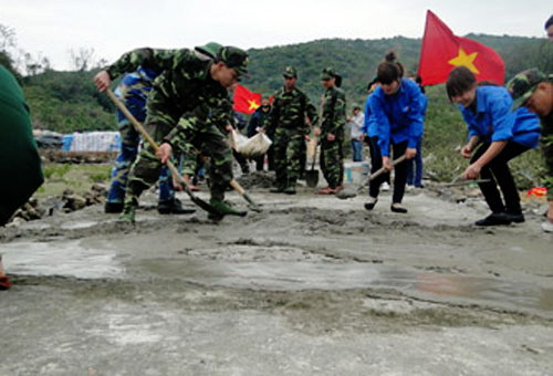 Soldados y habitantes en la isla Co To construyen nuevas vías de comunicación