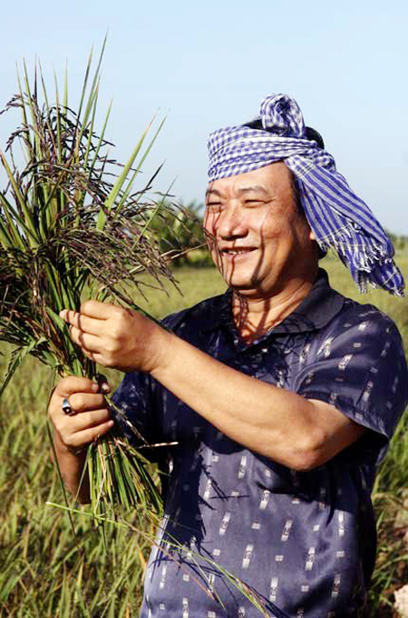Vo Minh Khai está contento con la cosecha de arroz ecológico