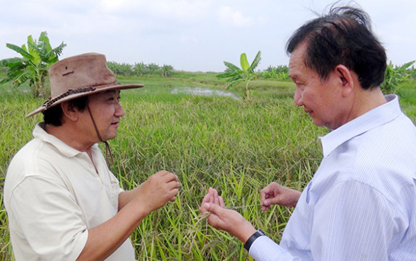 Vo Minh Khai (i) consulta a especialistas en agricultura