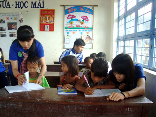 Entre estas acciones, los voluntarios han priorizado la transmisión del conocimiento cultural a los pequeños desde el nivel de jardín de infantes hasta la escuela primaria. Trinh Thi Phuong Loan, futura profesora, informó: "Por amor de maestro, le transmito el conocimiento cultural a los alumnos. Algunos niños gustan de ir a la escuela, pero tienen que quedarse en casa para pastorear el ganado. Mediante estas actividades voluntarias, estimulamos a los niños a superar las dificultades. Estos niños se emocionan y demuestran inteligencia. Aprendemos mucho sobre la vida y la sociedad en este lugar”.