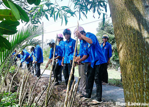 ![]() Jóvenes voluntarios de la provincia Bac Lieu despliegue el programa de saneamiento ambiental