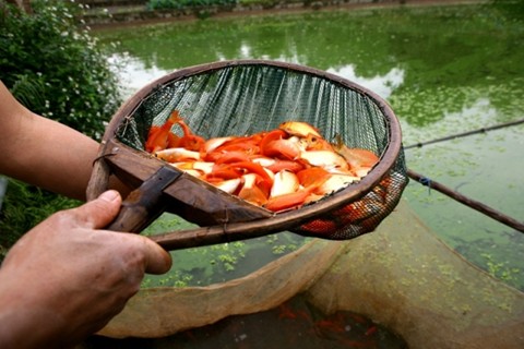 Según la creencia popular de Vietnam, el 23 de diciembre lunar se despide al ong Táo (Dios de la cocina), que viaja al cielo para informar sobre los trabajos y la conducta de cada familia en el año que termina. Este día, las amas de casa compran ofrendas para rendirle culto y entre los productos indispensables destacan las 3 carpas amarillas. De acuerdo con la antigua concepción, estos peces lo llevarán al cielo para comparecer ante el Rey. Últimamente, algunas zonas rurales desarrollaron la cría de carpas para suministrar a la ceremonia del Dios de la cocina y la aldea Thuy Tram, en la comuna de Tuy Loc, es uno de esos lugares. Hasta la fecha, numerosos aldeanos aún no pueden creer que gracias a estos peces sus vidas mejoraron.