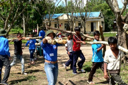 Jóvenes voluntarios ayudan a los habitantes locales a