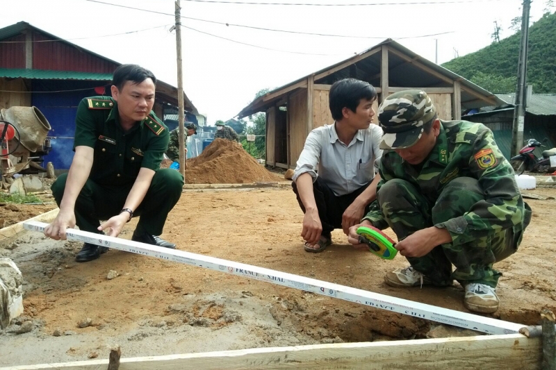 Guardias fronterizos de la estación de Pa U ayudan a la gente local a construir casas. (Foto: VOV) |