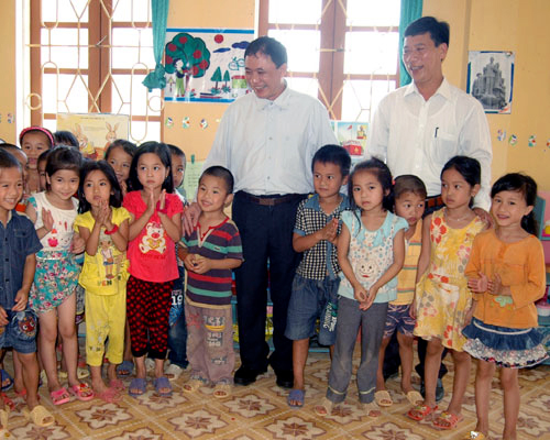 ![]() El presidente del Comité Popular de la provincia Yen Binh, Pham Duy Cuong visita el parvulario Mong Son de la comuna homónima