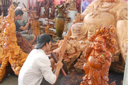 En My Xuyen, ahora hay 20 talleres, donde trabajan unos 150 artesanos. Cada 5 de enero del calendario lunar, los aldeanos celebran un festival en homenaje de los antepasados, quienes les transmitieron la profesión de talla sobre madera.