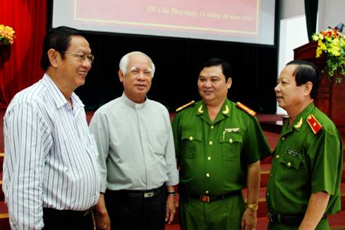 la Policía de la ciudad Can Tho para debatir la tarea de seguridad pública