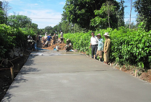 Pobladores de Vinh Thach están hormigonando una calle municipal