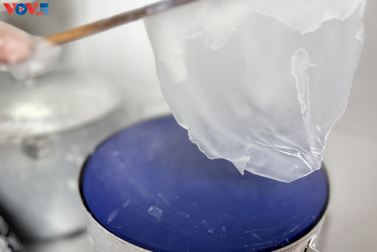 El banh cuon se elabora al vapor en capas finas y translúcidas, y destaca por su textura suave y delicada. (Foto: Huyen Trang/VOV5) |