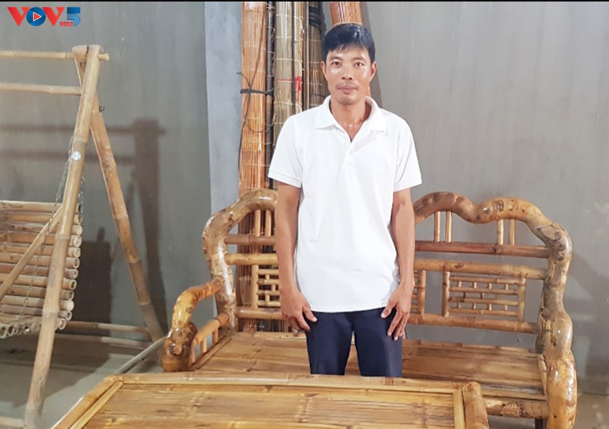 Tri Canh y sus productos artesanales hechos de bambú. (Foto: VOV) |
