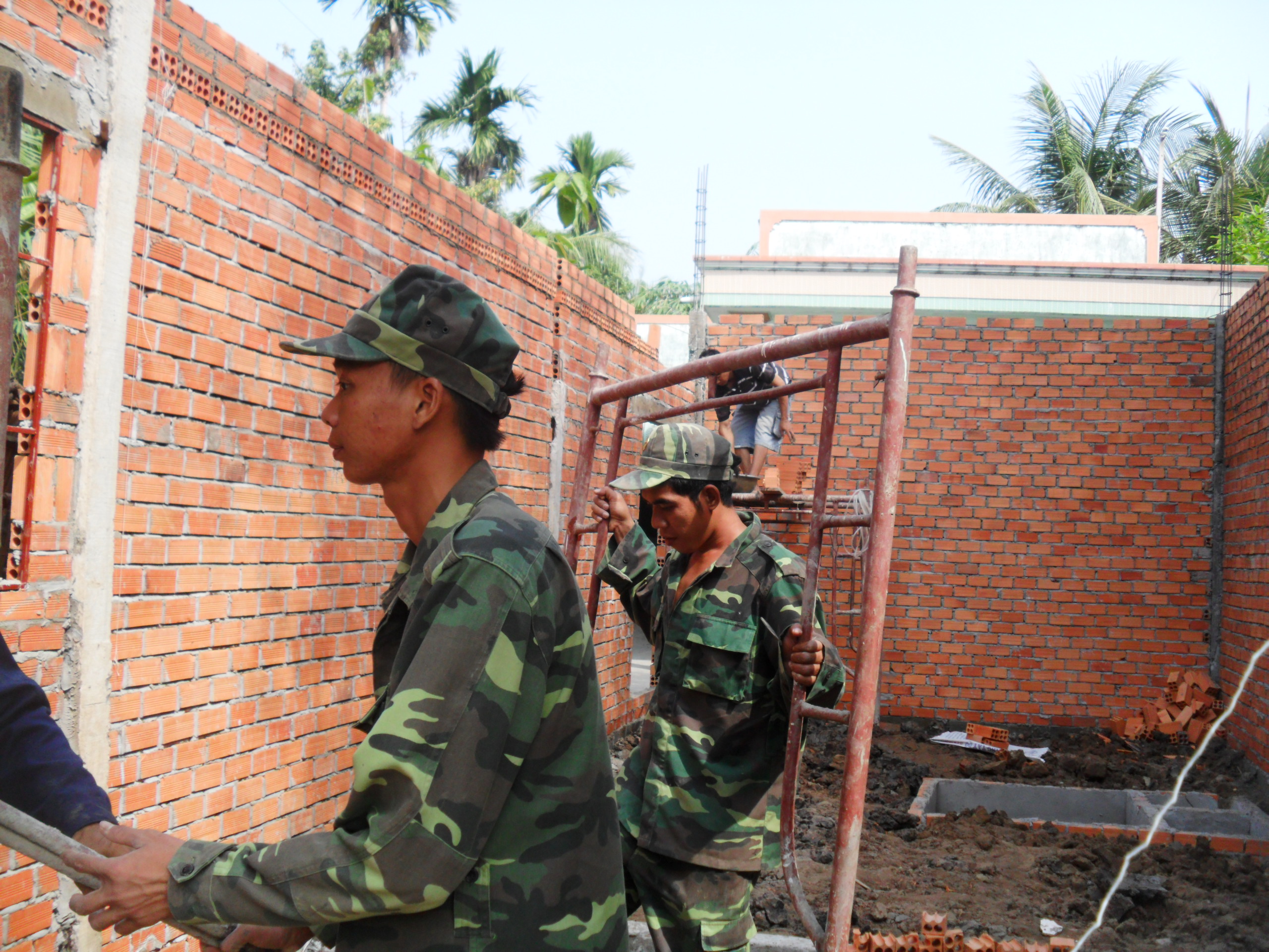 Soldados ayudan a pobladores de My Khanh a construir y reparar viviendas