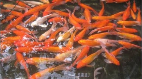 La aldea de cría de carpas rojas