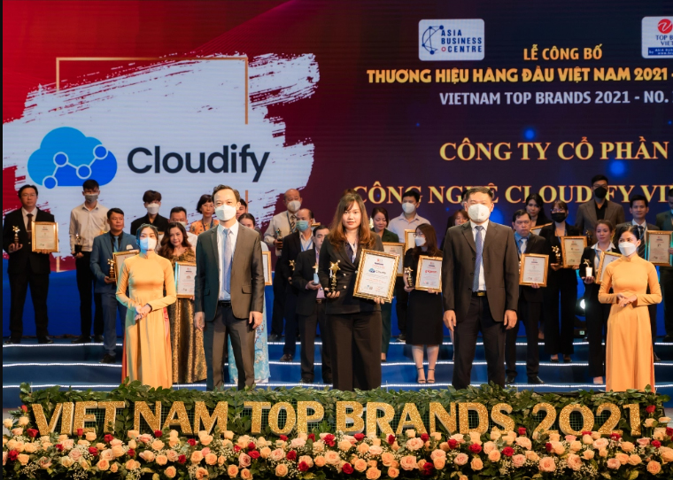 La representante de Cloudify Vietnam recibe el premio Top 10 Make in Vietnam otorgado a la empresa en el programa “Marcas líderes de Vietnam 2021”. (Foto: Cloudify) |