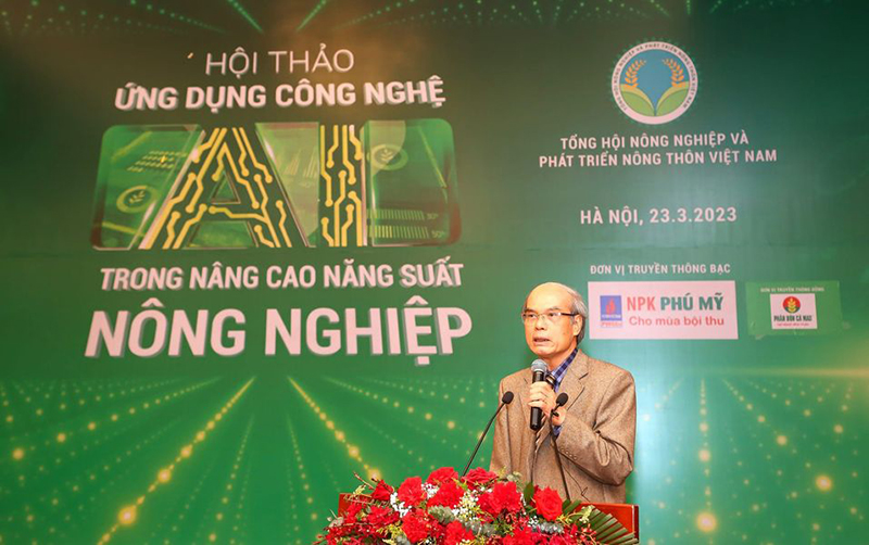 Mai Quang Vinh, presidente de la Junta de Administración de VDECA habla en el seminario "Aplicación de la Inteligencia Artificial para mejorar la productividad agrícola" en Hanói, el 23 de marzo de 2023. (Fuente: egap.vn) |