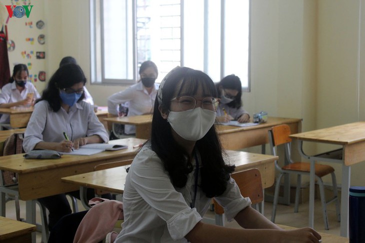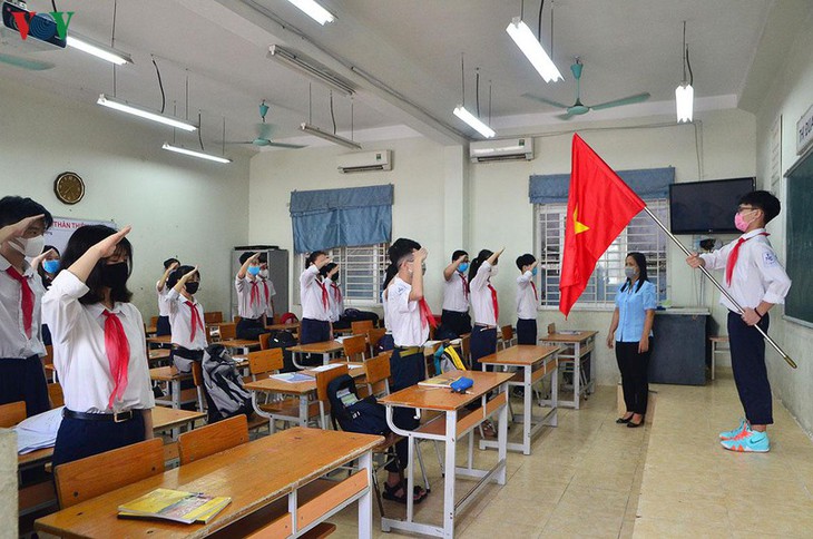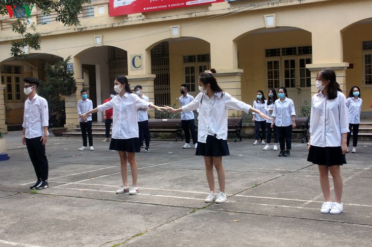 La directora de Viet Duc, Nguyen Boi Quynh, dijo que para garantizar la seguridad de los alumnos, la escuela ha limpiado y desinfectado todas sus aulas y el campus y realiza el control del estado de salud de los alumnos. |