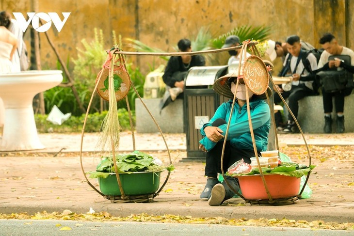 El arroz glutinoso tierno (com) es una especialidad del otoño en Hanói, nos cuenta Nguyen Thi Chieu, originaria de la provincia de Phu Tho, que lo vende desde hace veinte años. |